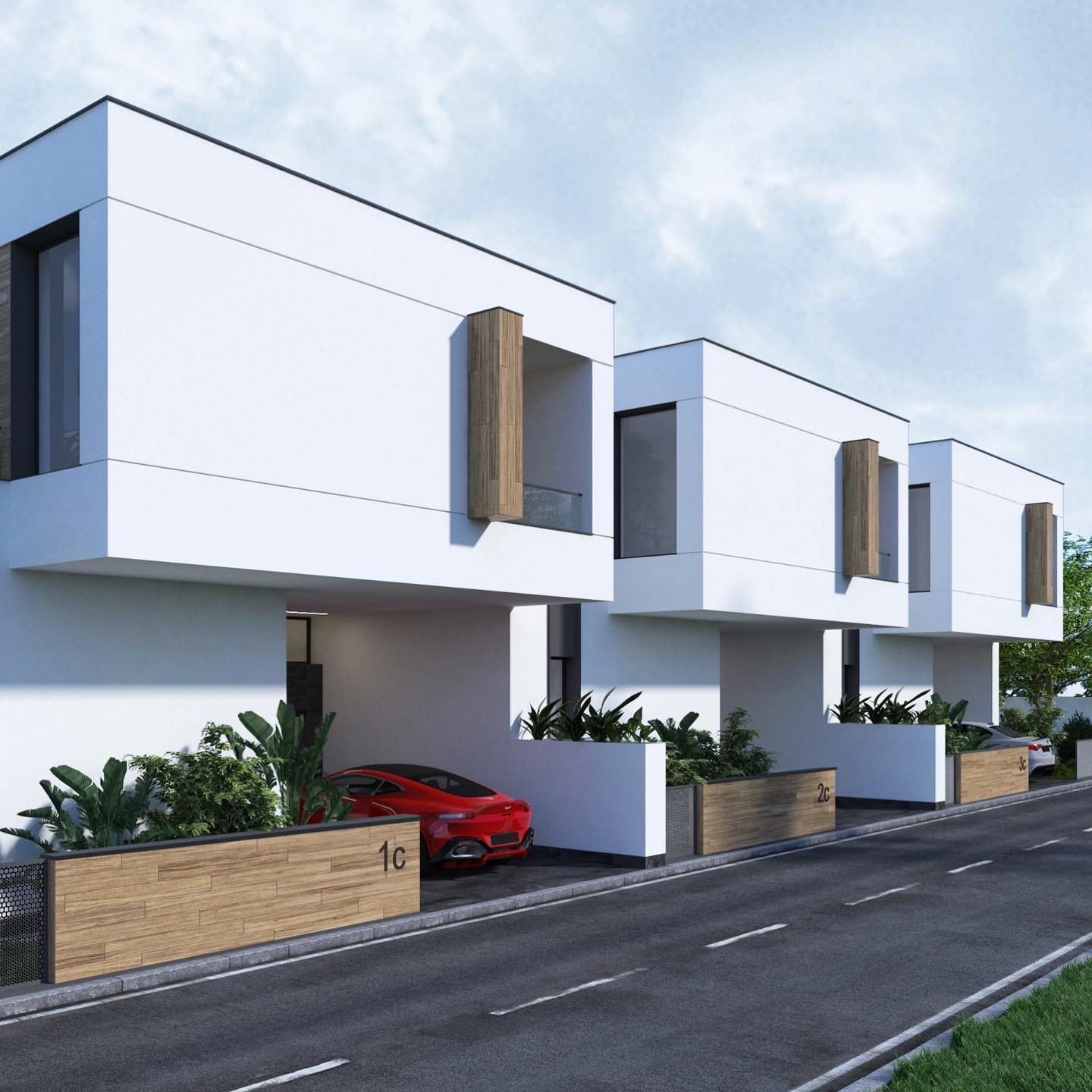Complexul rezidenţial dispune de 13 locuri de parcare, câte 1 loc garantat pentru fiecare casă. Parcarea se află în curtea interioară, securizată cu o poartă/barieră la intrare şi iluminată integral pe toată perioada nopţii.