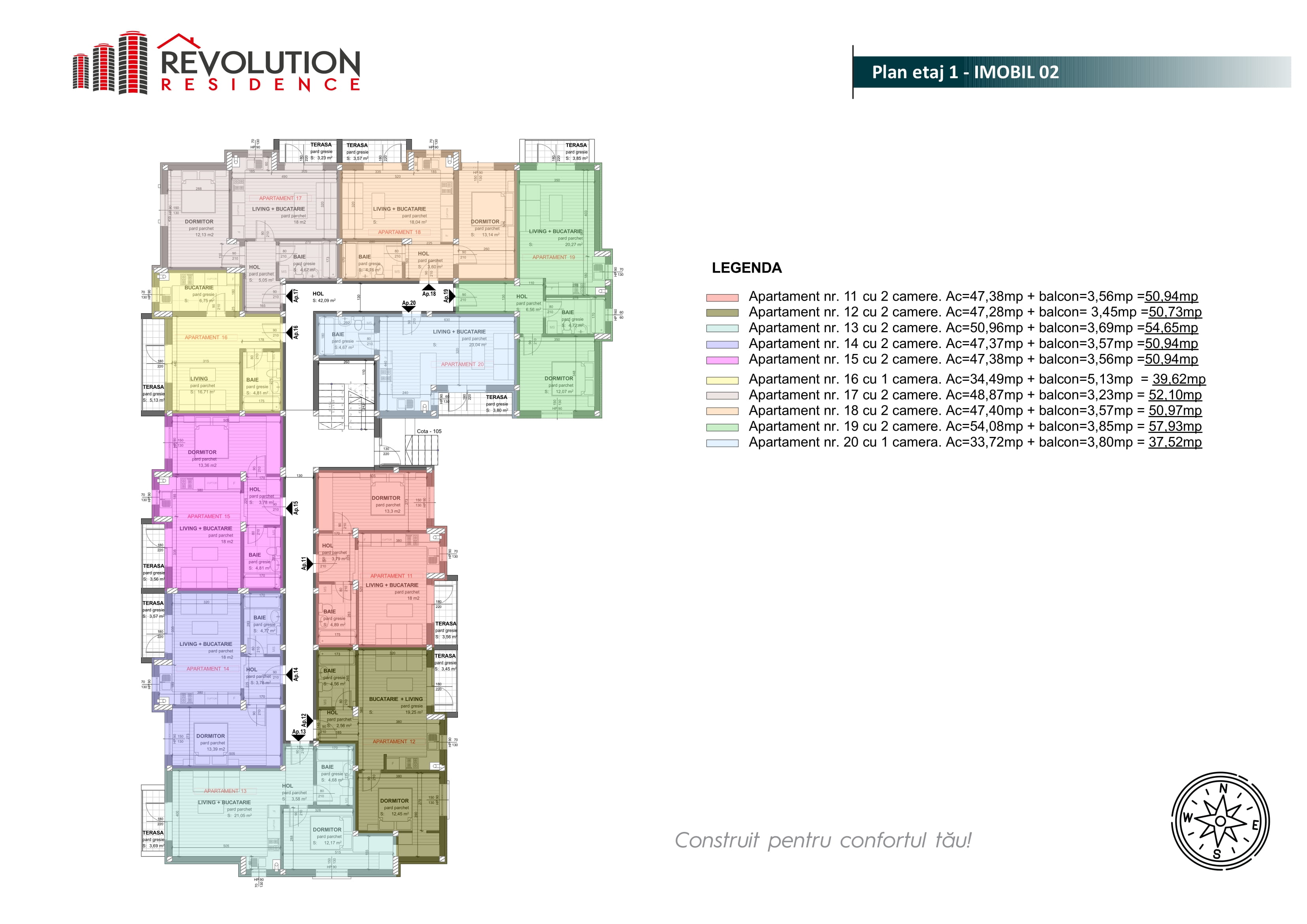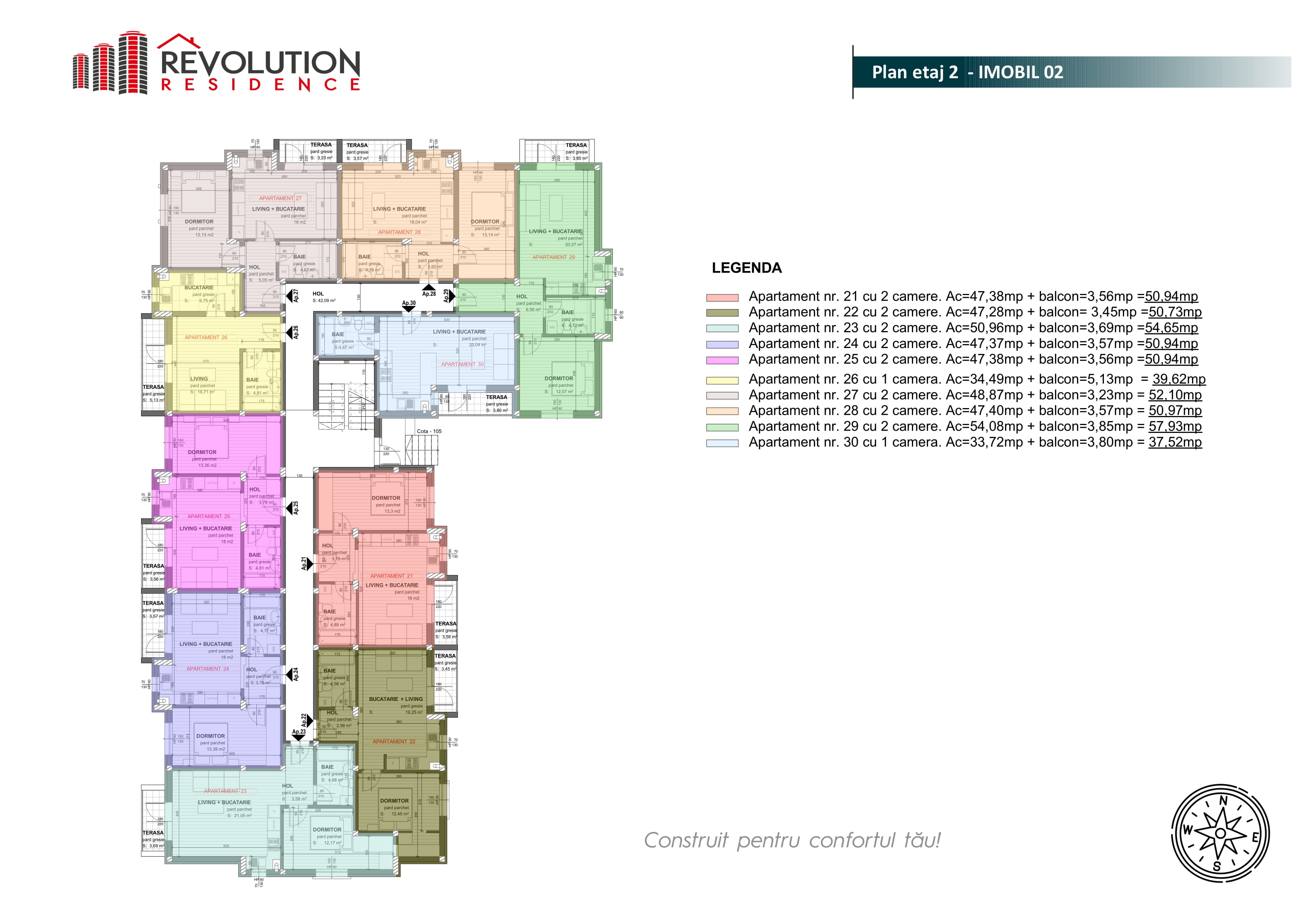 Descopera noul proiect rezidential de pe str. Paltinisului 28D, marca Revolution Residence vine in intampinarea dvs. cu apartamente noi, la preturi extrem de accesibile. Va propunem spre vanzare ultimul apartament cu 2 camere, avand o suprafata de 47.37 mpc plus balcon cu suprafata de 3.57mpc. La contractarea unui apartament din complexul rezidential Paltinisului 28D, beneficiezi de design gratuit pentru amenajarea camerei de baie. Detalii proiect: - imobil locuinte P+3E si cuprinde un total de 40 de apartamente - locatie : strada Paltinisului 28D, Baia Mare - acces foarte usor la mijloacele de transport in comun, restaurante, magazine -pozitionare excelenta, blocul fiind retras, ferit de agitatia orasului, pozitionarea fiind intr-o zona linistita -standarde ridicate de siguranta si calitate -design modern -finisaje moderne -parcare exterioara -apartamentele se vand in stadiul de semifinisat (centrala termica si calorifere montate, usa de intrare, pereti tencuiti, sapa, doua straturi de glet, instalatiile electrice executate fara aparataje, instalatiile sanitare executate fara obiecte sanitare, caramida Cemacon, tamplarie exterioara, termosistem exterior 10cm, balcon finisat) La dorinta clientului, apartamentele se pot vinde in stadiul de finisat. Fata de stadiul de semifinisat, cel de finisat are in plus urmatoarele: -gresie si faianta -parchet si plinta -zugravit interior -usile interioare Pret 41.400 Euro, Tva 5% inclus. Pentru mai multe detalii, ne puteti contacta la numarul de telefon 0372.477.477 / 0774.049.796