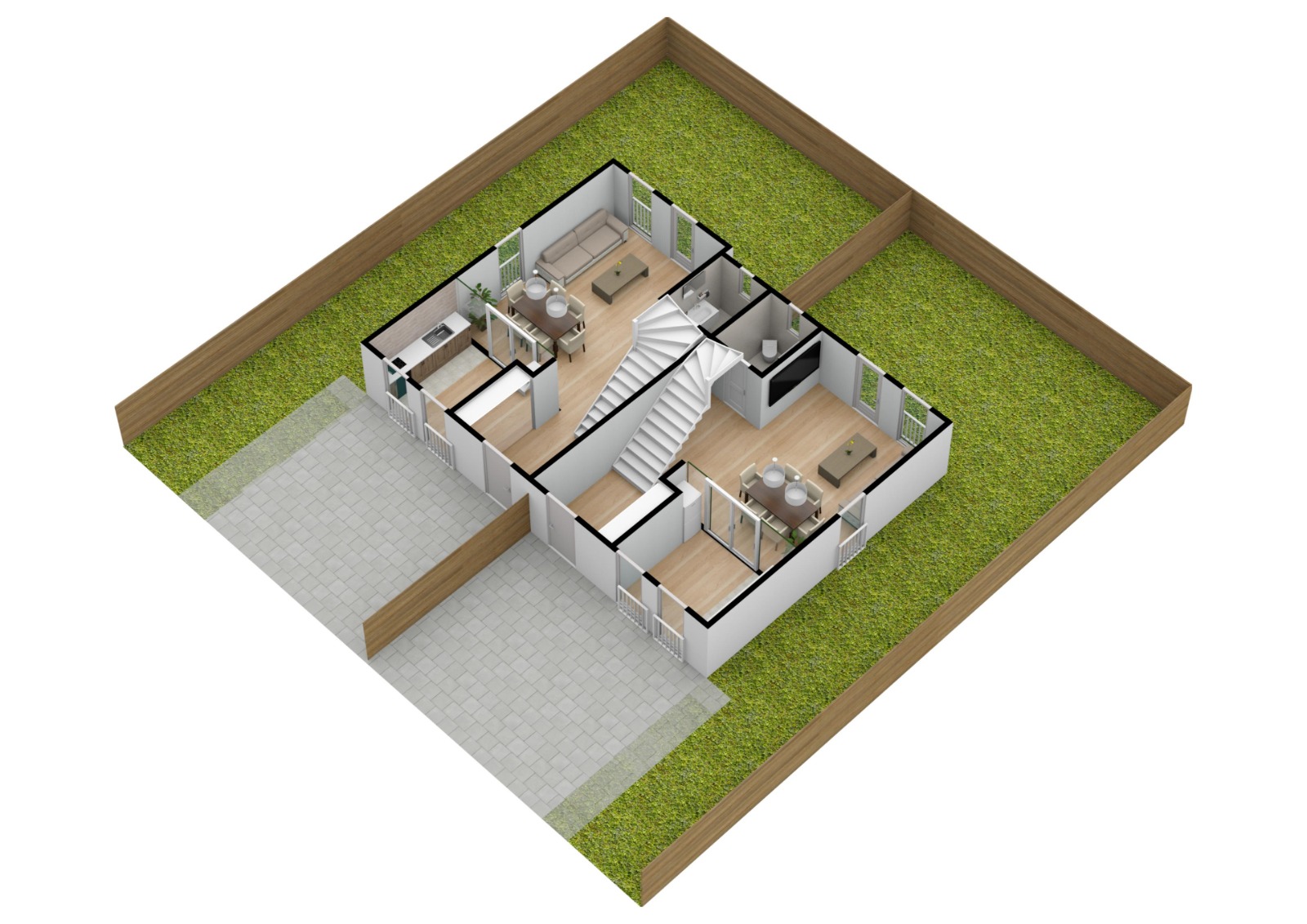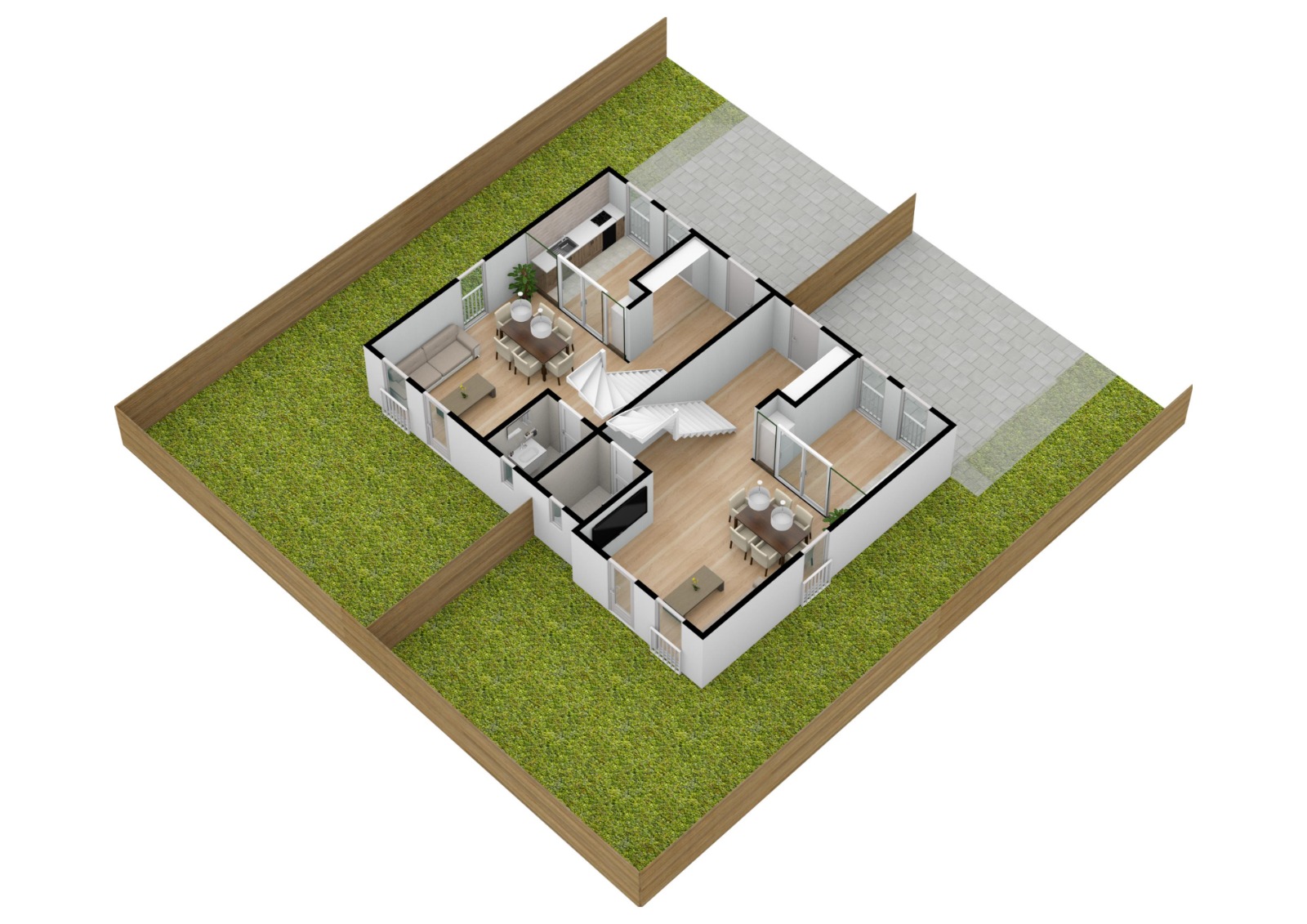 acces privat in cartier prevazut cu bariera, trotuare si drumuri pavate, iluminat stradal, zone verzi amenajate si multe altele