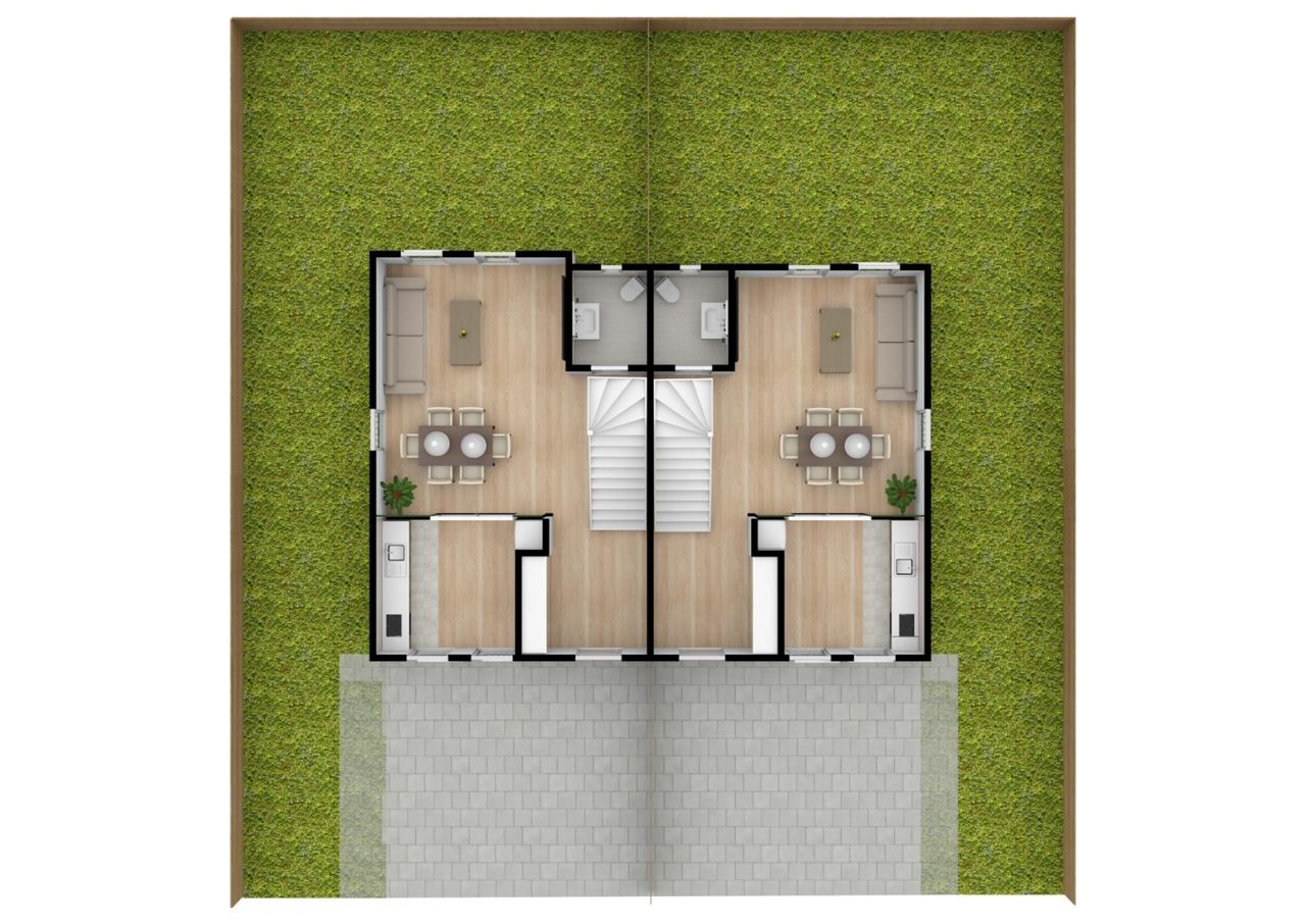 Casa cu 5 camere si 2 locuri de parcare in curte generoasa (250 mp, inclusiv amprenta casei), unde te poti relaxa in tihna cu familia. Case tip duplex la pretul de 135.000 euro. Hermannstadt Residence: peste 300 de locuinte predate pe Calea Cisnadiei. Facilități oferite de complex: - apă - racord la rețeaua de canalizare - curent electric-contoare - gaz metan - cablu TV si telefonie fixa - acces privat in cartier prevazut cu bariera - trotuare si drumuri pavate - iluminat stradal - zone verzi amenajate Casa tip duplex prezintă un design contemporan adaptat tendintelor actuale, iar materialele folosite sunt achizitionate de la parteneri cu o reputatie excelenta. Pentru a preveni infiltrarea apei si pierderile termice, fundatiile caselor sunt hidroizolate atat interior cat si exterior cu hidroizolatie. Structura casei este realizata din beton armat cu pereti din caramida eficienta Cemacon. Termoizolatia este asigurata prin placarea cu polistiren Baudeman. Sarpanta este realizata din lemn ignifugat si tratat impotriva acarienilor, iar pentru invelitoare a fost selectata tigla de la furnizorul Bramac. Tamplaria exterioara cu sistem de geam tripan ofera un coeficient de transfer termic excelent, cat si o izolatie fonica de clasa superioara. Suprafata libera de teren cu destinatie de curte este de 190 mp. Locuinta are 145 mp utili. Parter: -bucatarie&dinning-12 mp -Living-21,9 mp -camara-3 mp - baie-3,6 mp Etaj 1: -dormitor 1- 12,33 mp; -dormitor 2 – 10,11 mp; -dresing– 6mp; -baie – 4,66mp Etaj 2: -dormitor 16,8 mp -camera de zi 12,82 mp - baie 3,5 mp Podul poate fi folosit pentru depozitarea articolelor de dimensiuni mici. Casa are 2 balcoane de 2,12 mp si o logie de 2,19 mp. Casa se va preda LA ALB in interior si LA CHEIE in exterior. Pentru imbunatatirea confortului dvstra va putem oferi si incalzire in Pardoseala. Pretul afisat este valabil pentru un avans de 50%, iar pentru un avans de minim 15%, acesta creste cu 3990 euro. Locuintele au termenul de finalizare la inceputul lunii Martie 2022. Locatia complexului: Cisnadie, Str. Nicolae Ghica Budesti (vis a vis de BISERICA - lângă Magazinul Profi si viitorul magazin LIDL).